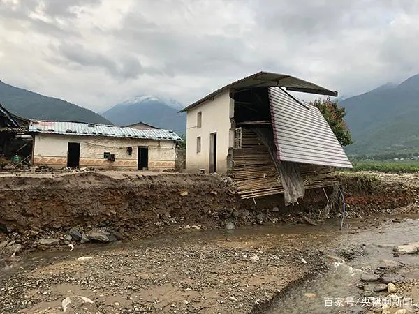 他们生前居住的房屋,在暴雨中遭乱石袭击,房子被劈成了两半,一半悬在路边,另一半被冲走。